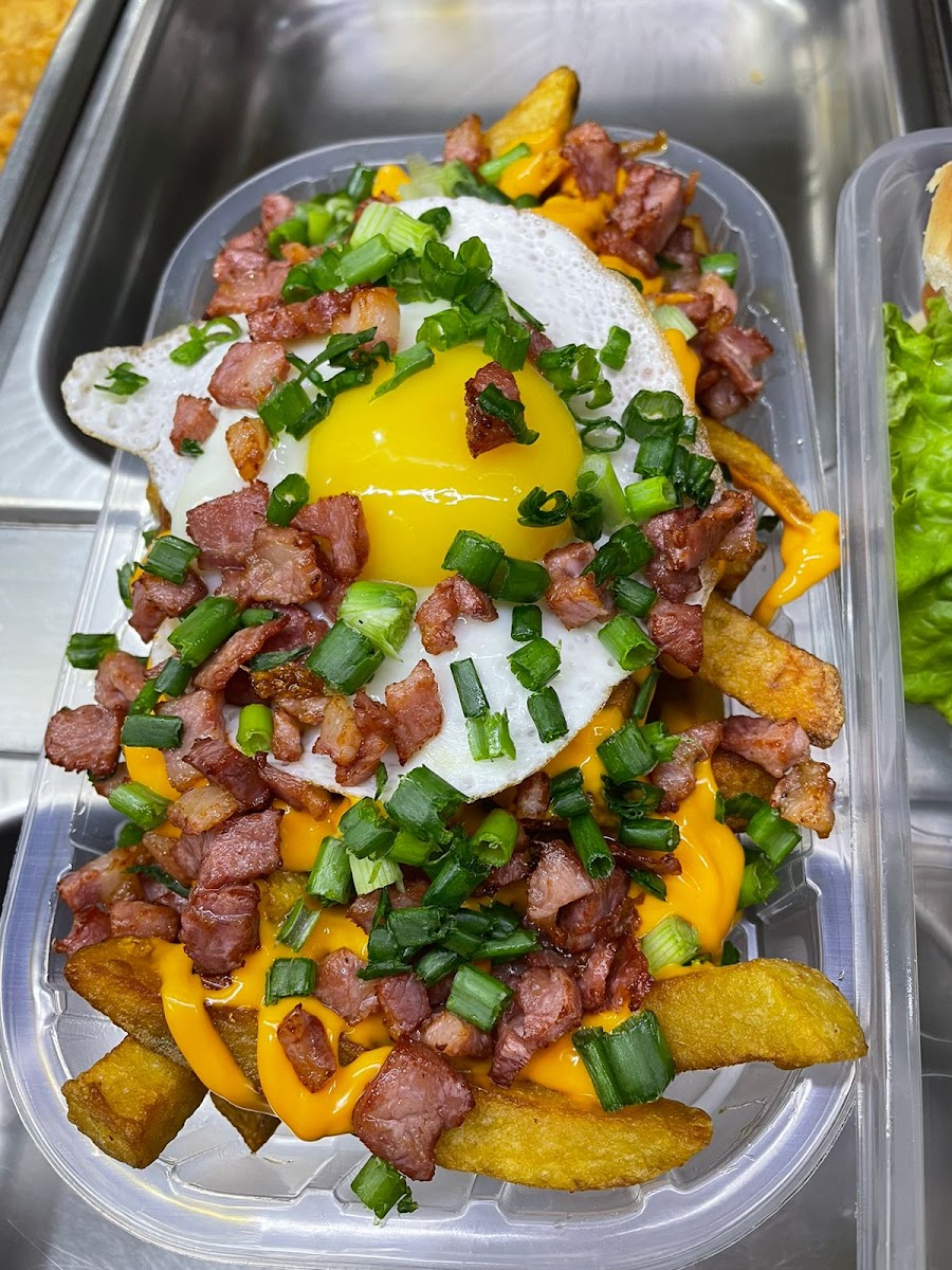 Excelente la comida, me pedí papas fritas con cheddar y bacon , la porción abundante